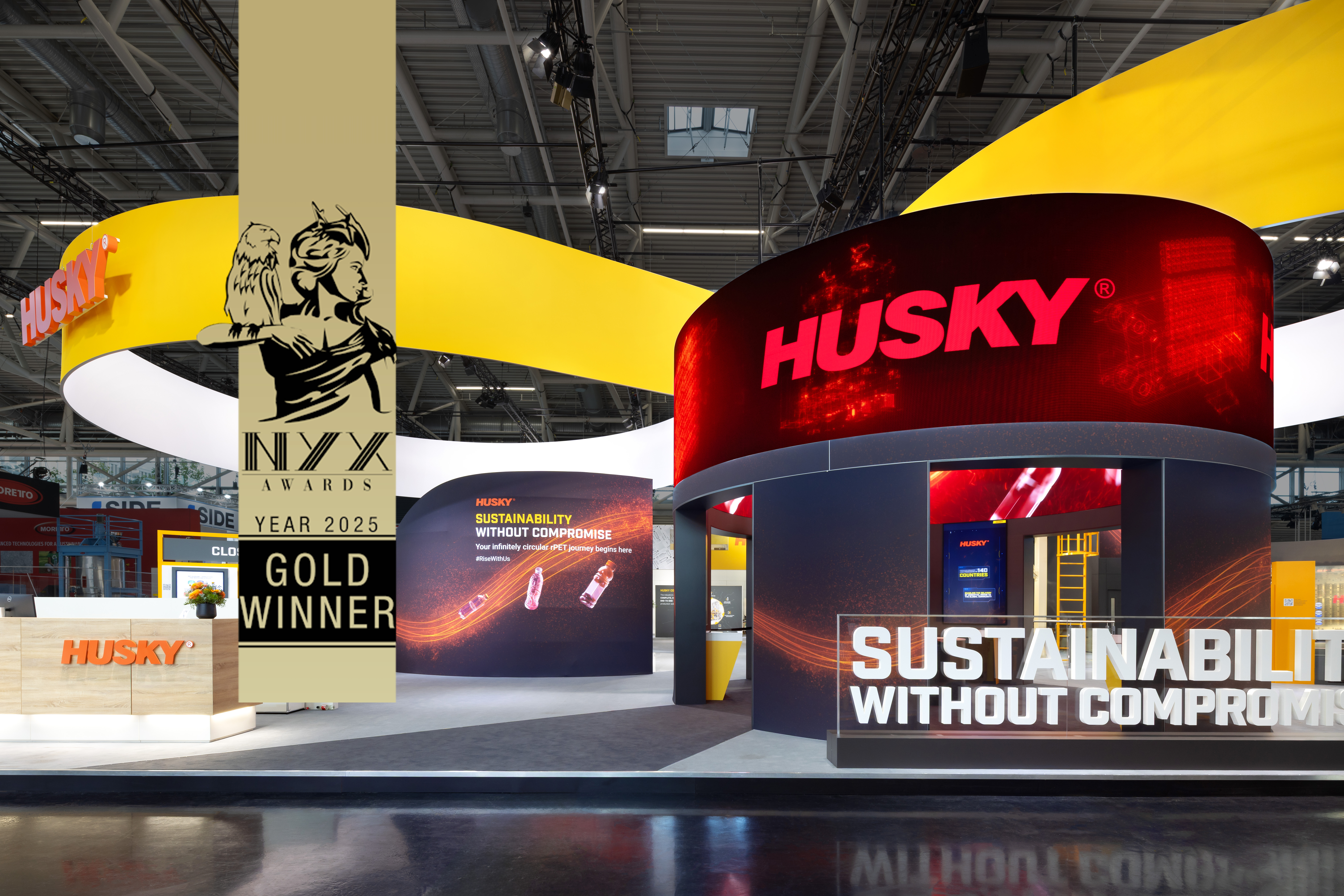 Dass dieses Zusammenspiel aus komplexem Maschinenbau, digitalem Storytelling und hochwertigem Messebau im Wettbewerb mit globalen Top-Marken überzeugen konnte, zeigen die Auszeichnungen, die Husky in folgenden Kategorien erhielt: